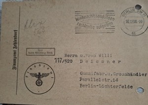 Das Umarbeiten der Postsendungen erfolgte in den Eisenbahnpostwagen. Bahnpoststempel von 1927 Breslau - Dresden / von 1941 Berlin - Hannover / von 1928 Leipzig - Dresden.