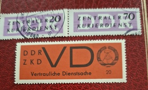 2. Zentraler Kuriedienst (ZKD DDR), Streifen der Verwaltungspost B, sie dient der Beförderung von Postsendungen staatlicher Behörden und wichtigen VEB Betriebe. / Neue Zeichnung der Streifen für den ZKD. Diese Belege mußten später Vernichtet