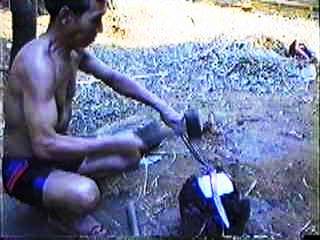 Aus Sicherheitsgründen, man konnte nur bestimmte Pfade gehen, der Minen wegen, die hier noch vergraben sind. Ein Vietnamese war immer dabei, der alles        gezeigt und erklärt hat, wie es damals während der Kämpfe war. Die Anlagen  waren ein Zufluchtsort der Vietcong.Ich sah Fallen, die gespieckt mit spitzen                                                                                                                                  Bambusstäben, sich in