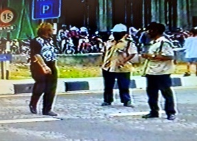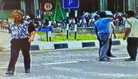 Menschenauflauf war enorm. Der Zufall kam uns zu Hilfe, die vietnamesische Stewardess, im Foto zu-