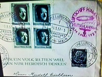 1. Postbeförderung mit Luftschiff - hier mit der Hindenburg am 01.05.1937, Post- Polarabwurf bei Nordamerikafahrt - Sonderstempel. 3. Zeppelin Sonderstempel - Le 130 Fertigstellung, Friedrichshafen Bodensee 25.7.37