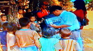 In einem Lager für Waisenkinder, verteilen wir Süßigkeiten und Eiscreme