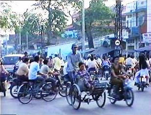Verkehrsalltag in Vietnam, immer noch sind Fahrräder und Motorbikes die Nr.1, in diesem Lande.