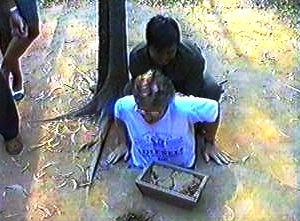 Aus Sicherheitsgründen, man konnte nur bestimmte Pfade gehen, der Minen wegen, die hier noch vergraben sind. Ein Vietnamese war immer dabei, der alles        gezeigt und erklärt hat, wie es damals während der Kämpfe war. Die Anlagen  waren ein Zufluchtsort der Vietcong.Ich sah Fallen, die gespieckt mit spitzen                                                                                                                                  Bambusstäben, sich in