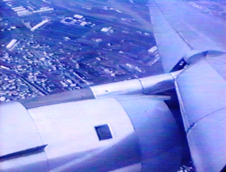 Hier überfliegen wir AfganhistanIn Arabien geht die Sonne auf,unser Flugzeug wird angestrahlt,links unten abfakeln der Ölfelder