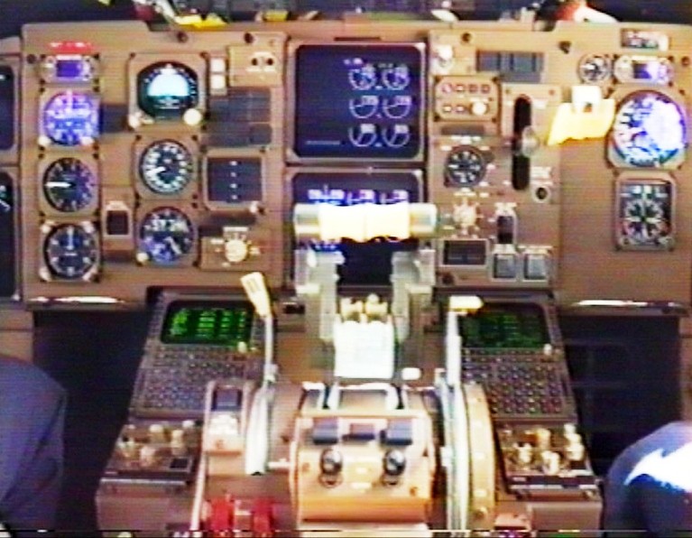 Maschine kommt uns entgegen,mit qualmenden Triebwerken!