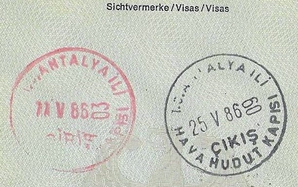 Ein-und Ausreisestempel: Griechenland Jugoslawien Italien Türkei Rumänien Constanza - Ibiza blau Ein und Ausreisestempel
